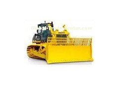 Bulldozer is a crawler (continuous tracked tractor) equipped with a blade used to push large quantities of soil, sand, rubble, or other such material during construction or conversion work and typically equipped at the rear with a ripper to loosen densely compacted materials. Bulldozers also be used for leveling the ground and accumulating loose materials, removing obstructions in operation place.